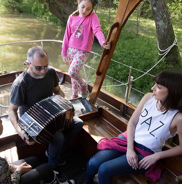 *Concierto de bandoneón: El concierto dura aproximadamente una hora. (Ver videos)*Travesía por la Segunda Sección: Ríos Antequera y Paraná - Ríos Paycarabí, Estudiante, Capitancito y regresamos por el Paraná al Antequera.*Travesía por el rio Paraná: Salida del Arroyo Antequera y navegación de una hora por el río Paraná de las Palmas.*Circuito tanguero: Salimos del Antequera. Cruzamos el Paraná y fondeamos en el Paycarabí para comer algo y disfrutar del concierto.*Hacia el corazón del delta: salimos del Antequera. Cruzamos el Paraná, Paycarabi, Estudiante, Felicaria, Río Paraná Mini. Allí fondeamos para comer unas carnes al carbón luego regresaremos por el Canal de la Serna y descendemos por el Río Paraná de las Palmas hasta el Arroyo Antequera.*Travesía Nocturna: Arroyo Antequera, Ríos Parana, Capitán, Sarmiento, Lujan, Tigre y desembarcamos en el mismo lugar del embarque.